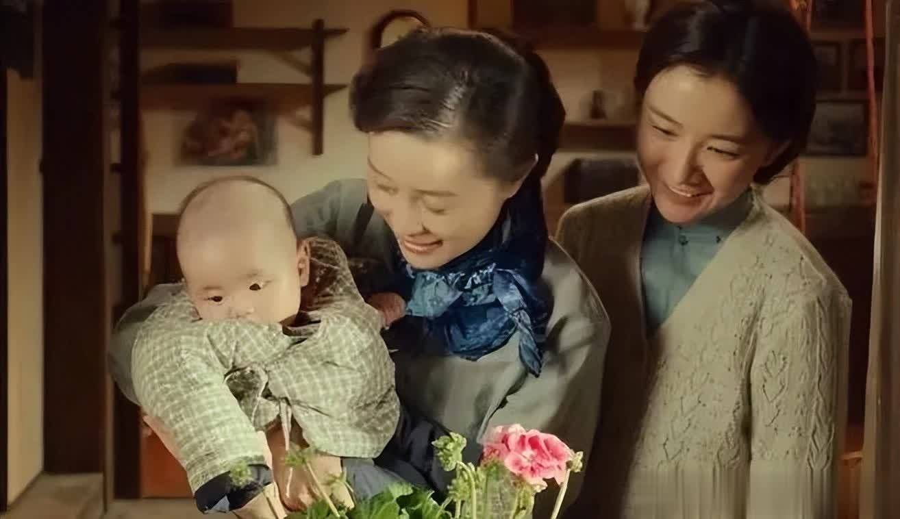 她抱着孩子,穿着洗得发白的旗袍,说话时低着头,眼神却警惕地扫视四周;